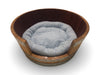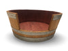 - Comes with a round dog cushion which fits snugly into the half barrel bed. Colour & pattern on cushion will change due to stock levels.